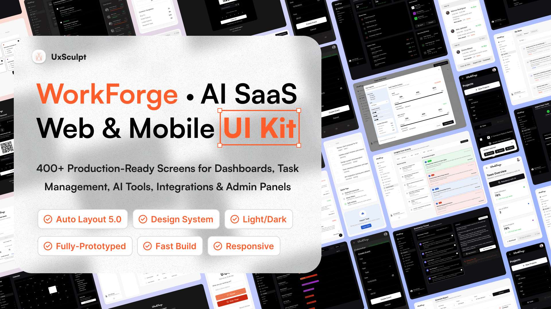WorkForge is a comprehensive SaaS UI kit for building dashboards, task management systems, AI-powered tools, client portals, and admin panels. Designed for real products with production-ready components, scalable layouts, and consistent workflows across web and mobile.